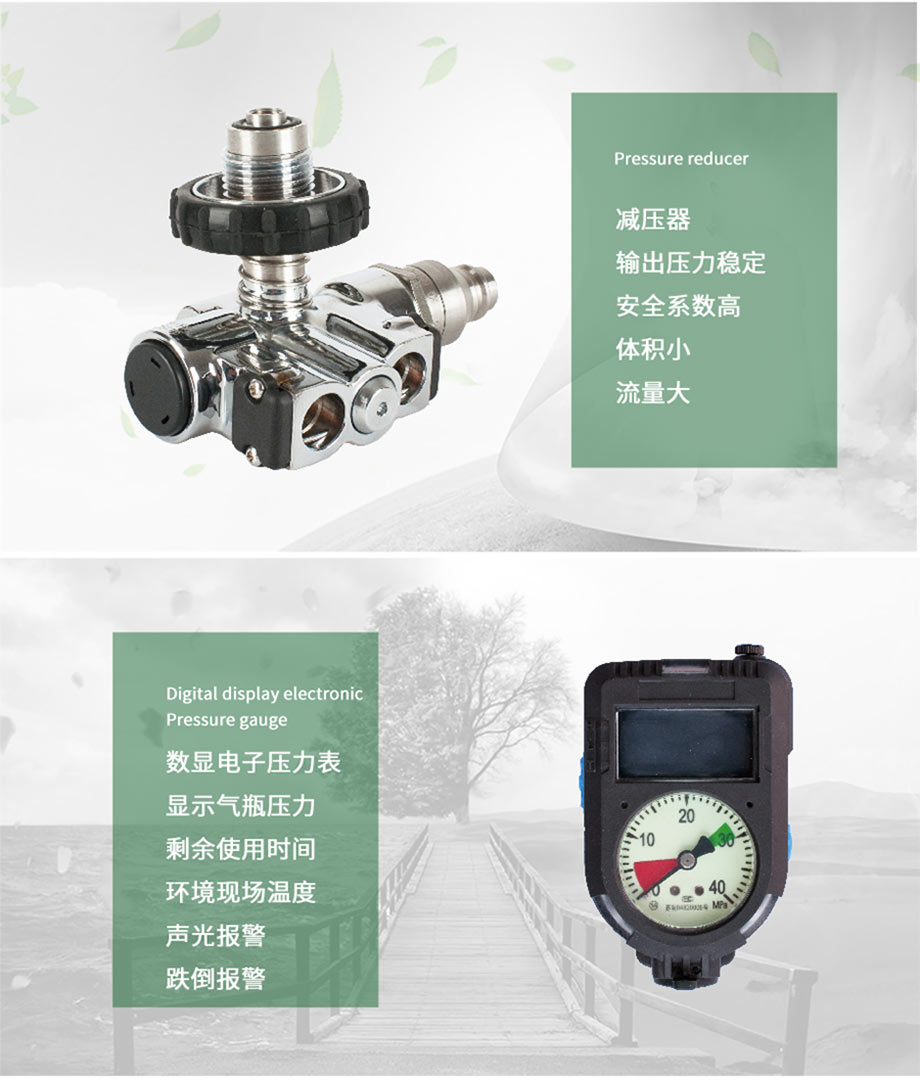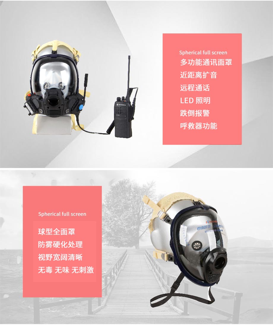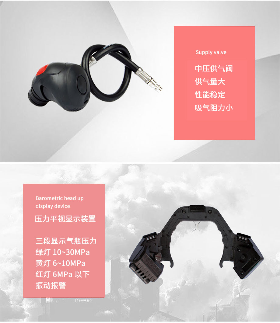 | 產(chǎn)品特點(diǎn): | 配備數(shù)顯壓力表式平視顯示裝置, 發(fā)射壓力表能夠?qū)崟r(shí)顯示氣瓶壓力、呼吸器剩余使用時(shí)間和環(huán)境現(xiàn)場溫度,并集成具有聲光報(bào)警的跌倒報(bào)警功能(即呼救器功能);壓力平視顯示裝置能夠通過三種顏色的指示燈呈現(xiàn)出氣瓶內(nèi)的壓力范圍。配備快速充氣裝置, 以對流的形式快速地為空氣呼吸器補(bǔ)充氣源。配備擴(kuò)音通訊裝置, 提供近距離現(xiàn)場環(huán)境擴(kuò)音和遠(yuǎn)程通話功能,并集成具有聲光報(bào)警的跌倒報(bào)警功能(即呼救器功能)。配備胸前他救接口, 為使用者之外的人員提供呼吸救助。 |