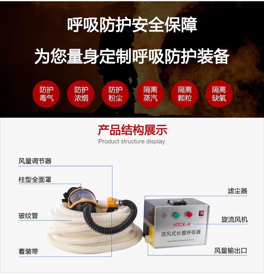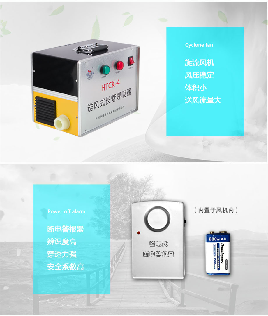 | 產(chǎn)品特點: | 斷電不斷供氣,內(nèi)置蓄電池可保停電后持續(xù)工作3小時(適用于HTCK-4BX型);斷電報警,停電即刻高分貝報警聲,提醒佩戴者需立即撤離工作現(xiàn)場(不適用于HTCK-4BX型);工作時間無限制,可持續(xù)穩(wěn)定供氣;供氣量充足,滿足不同勞動強(qiáng)度的呼吸量需求;供氣量可調(diào)節(jié),不戧風(fēng)也不憋氣。 |